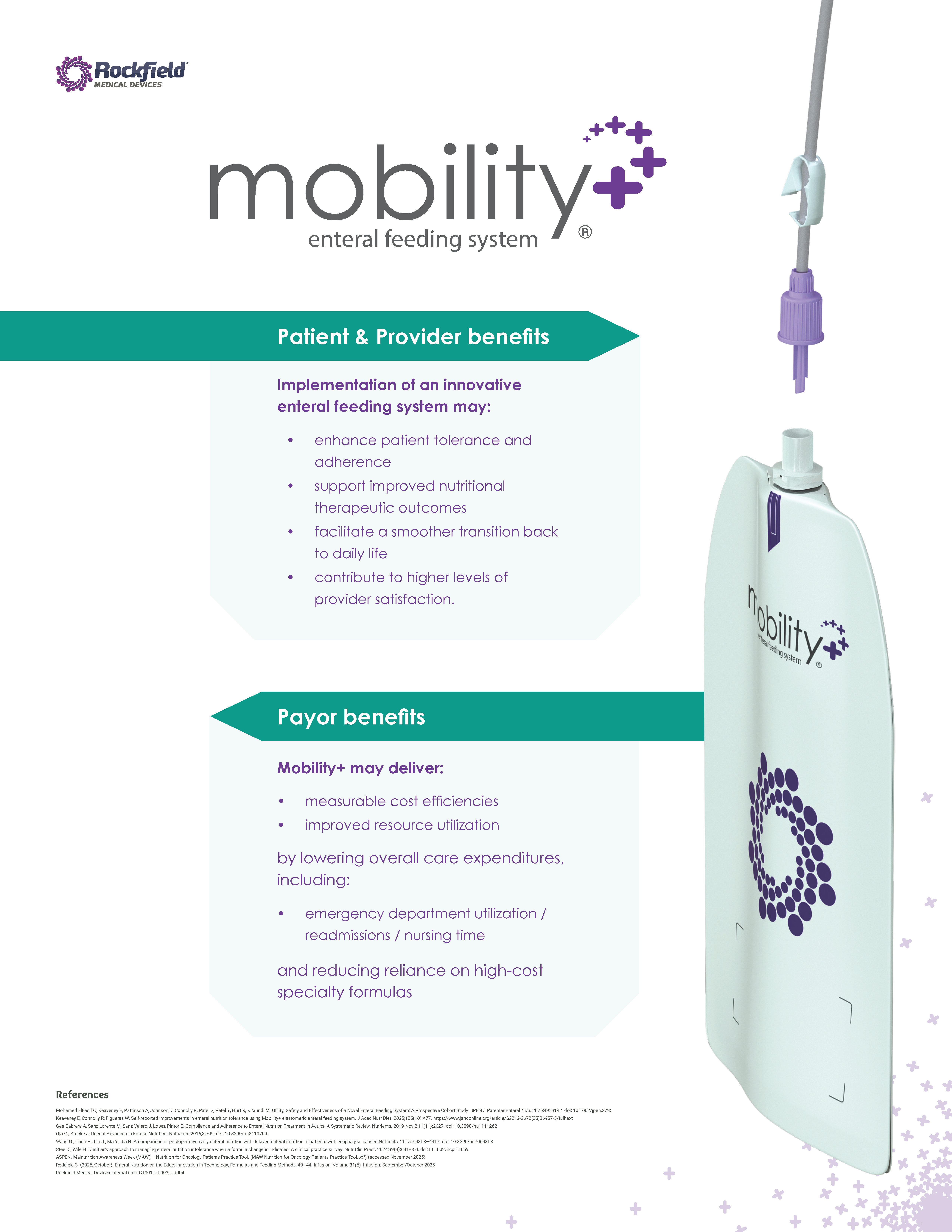 Happy New Year to all our nutrition support colleagues, patients, and advocates! Rockfield Medical Devices is excited to share a few updates on the Mobility+® enteral feeding system – a silent,electricity-free, wearable alternative designed to support mobility, comfort, and quality of life for tube feeders.